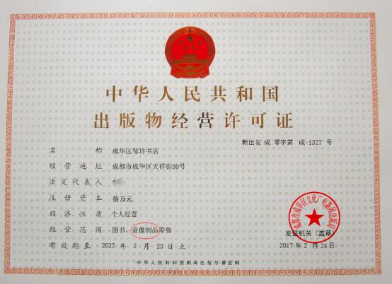 3、批準(zhǔn)的核發(fā)《出版物經(jīng)營(yíng)許可證》,不批準(zhǔn)的做出書面說(shuō)明。申請(qǐng)辦證人領(lǐng)取證件,張貼在經(jīng)營(yíng)場(chǎng)所顯眼位置。